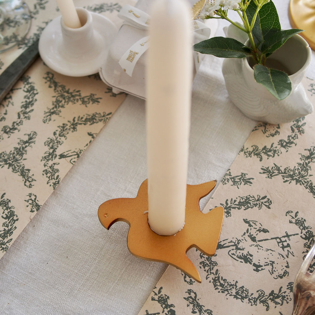 Je mise sur les petits détails ! Un beau bougeoir en forme de colombe doré qui nous rappelle l’Esprit Saint, découvrez ici notre gamme de petites décorations pour Pâques ici !