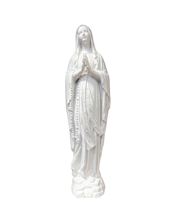 Cette statue de la Vierge Marie de 30 cm est conçue pour être placée n extérieur, dans une jolie petite niche, dans un oratoire ou sur une sépulture. Avec ses lignes simples et équilibrées, elle s’intègre naturellement dans un espace de mémoire et de recueillement. Un élément discret et apaisant pour honorer un proche.
